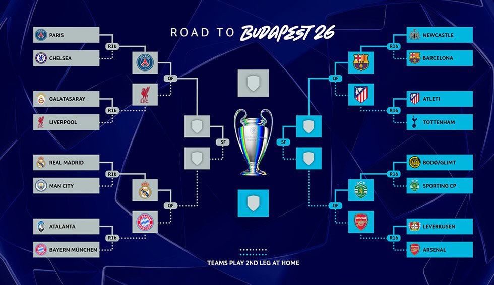 Der FC Barcelona steht in der laufenden Saison zum fünften und sechsten Mal Atlético Madrid gegenüber, zudem nehmen es Real Madrid und der FC Bayern München miteinander auf. Und: Paris Saint-Germain und der FC Liverpool duellieren sich, Sporting fordert den FC Arsenal heraus.