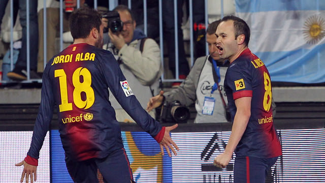 Wie zu erwarten war, versuchte Málaga wie schon im Ligaspiel zu Hause gegen den FC Barcelona durch ein frühes Pressing und darauffolgendes schnelles Aufrücken zum Erfolg zu kommen. Personell musste man diese Aufgabe aber geschwächt angehen, da neben dem Langzeitverletzten Julio Baptista auch Isco, Toulalan und Monreal nicht spielen konnten. Stammtorwart Willy Caballero wurde wie üblich im Pokal von Carlos Kameni ersetzt.